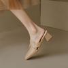 French retro square head bag head half slippers women's outer wear half tray fashion thick heel middle heel apricot half drag muller shoes