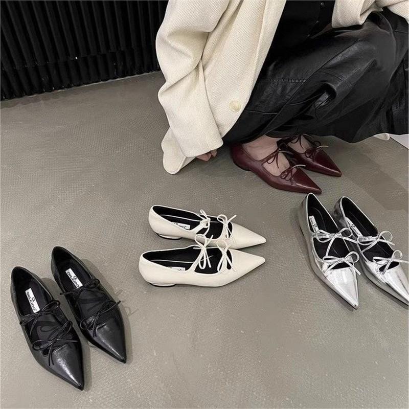 In the spring and autumn of 2024, the new Korean flat-bottomed pointed single shoes, women's bows, shallow mouths, and Mary Jane shoes.
