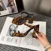 French temperament word with thick heel open toe cool slippers women summer wear waterproof table leopard print beautiful high heel sandals women