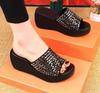 Slippers women's summer 2025 new fashion wear one-word drag versatile thick-bottomed muffin slope heel rhinestone Internet celebrity cool slippers