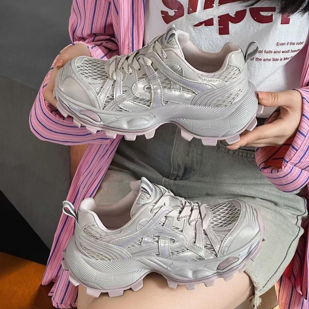 Leather dad shoes women's 2025 spring new thick-soled heightening straps versatile breathable mesh casual sports women's shoes