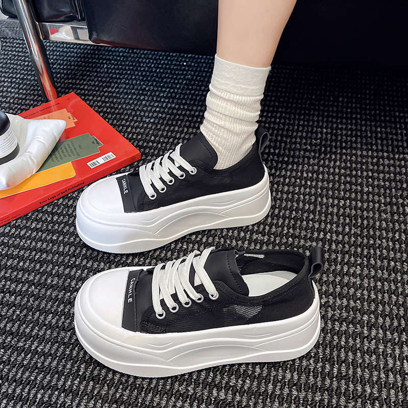 Little white shoes women's summer thin 2025 new lightweight breathable mesh muffin shoes small thick-soled heightening board shoes