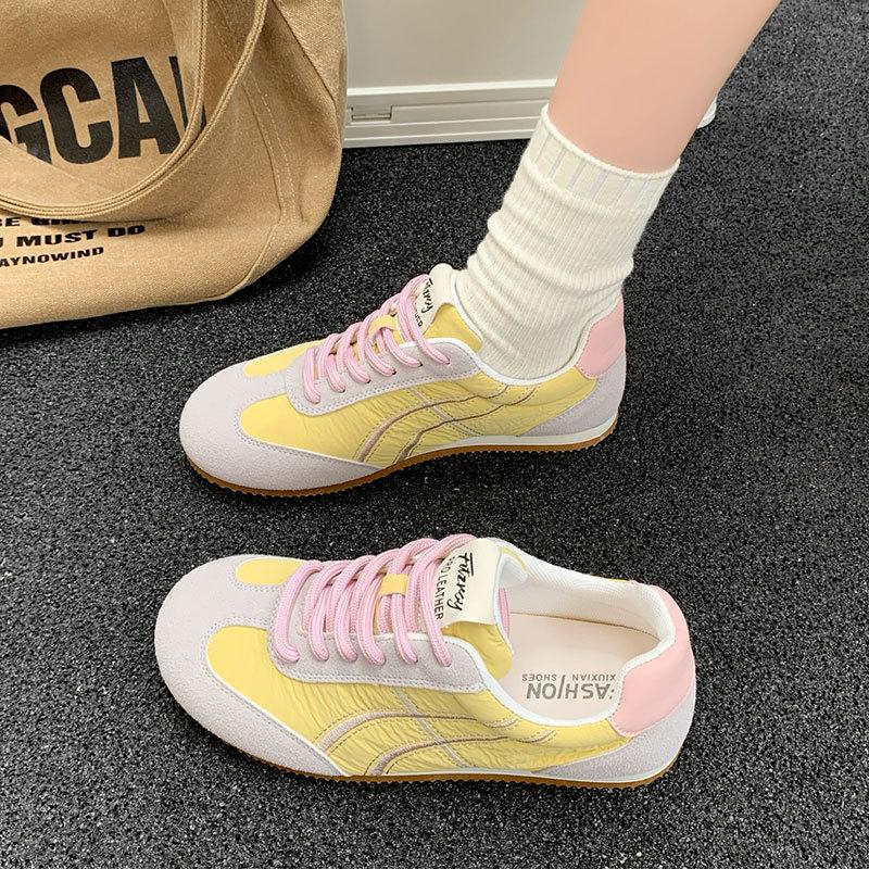 Retro lace-up casual sports shoes women's 2025 spring new versatile flat-bottomed Dexun Forrest Gump shoes color matching white shoes