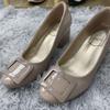 Soft leather version~ Naked pink single shoes women's 2025 new autumn classic square buckle patent leather versatile thick heel commuter women's shoes