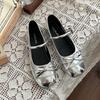 Versatile women's shoes silver light mouth ballet flat shoes 2025 new spring skirt French square head Mary Jane shoes