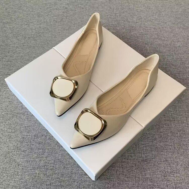 Flat shoes women's shallow mouth 2025 spring new versatile four-season pointed single shoes soft sole square buckle ladyshoes comfortable Doudou shoes
