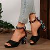 Women 2025 Summer Shoes Sqaure High Sandals Vintage Flower Print Open Toe High Heels Woman Casual Buckle Ankle Strap Sandalse