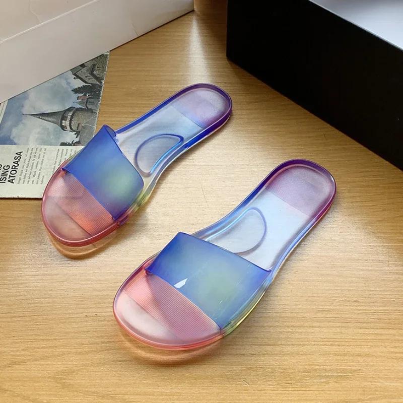 Women Slippers Pvc Transparent Crystal Casual Shoes Ladies Sandals Fashion Summer Clear Flip Flops Flat Slippers Zapatos Mujer
