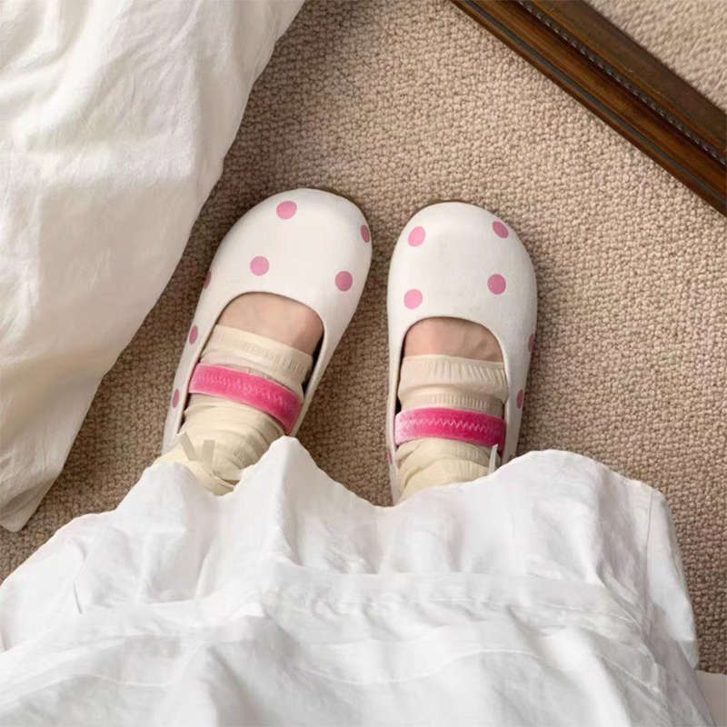 Cute little polka dots~ small fresh round head shallow mouth with skirt single shoes women's low heel soft sole one pedal Mary Jane shoes
