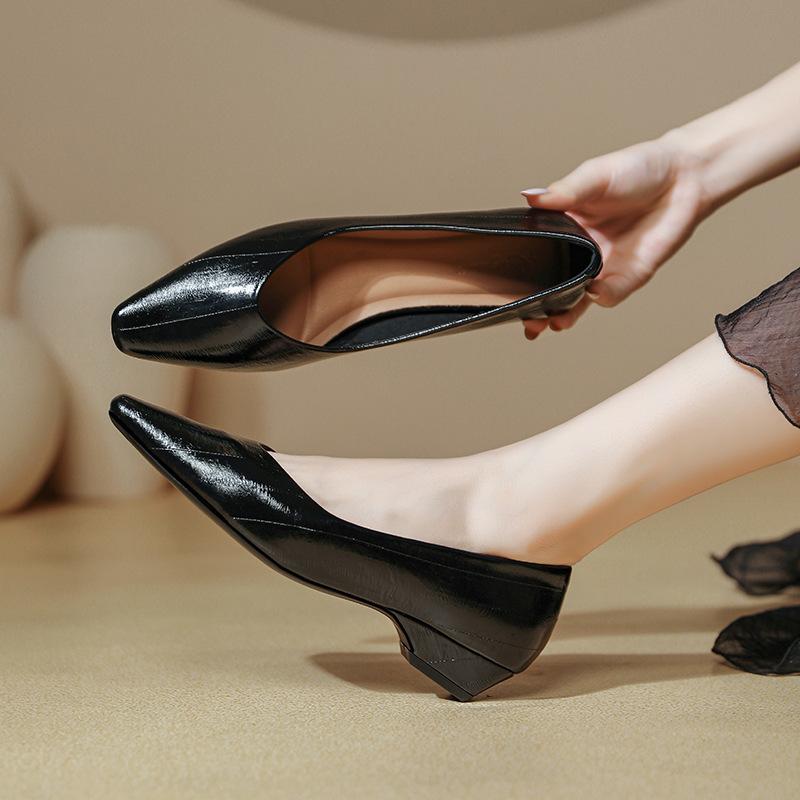 Black high heels thick heel not tired foot temperament commuter dress professional women's shoes 2025 new square head v mouth single shoes