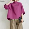 ZANZEA Women Casual Turn Down Collar 3/4 Sleeve Loose Blouse