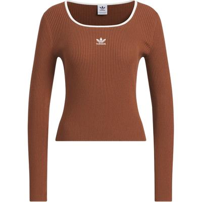 Originals Essentials Rib ilgomis rankovėmis marškinėliai Moteriški viršutiniai drabužiai Tamsiai pilka Ruda IJ5385