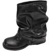 Western Cowboy Boots Women's Pleated Pile Boots Black Retro Coarse Heel Knight Boots Summer Short Boots 2025 New