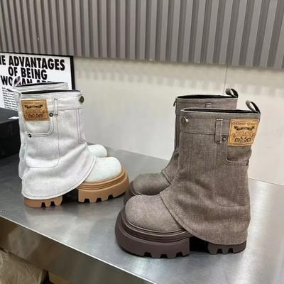 Jolin Tsai Style Casual Retro Thick Bottom Fashionable Trouser Boots Autumn New Arrival British Style Round Toe Rubber Outsole