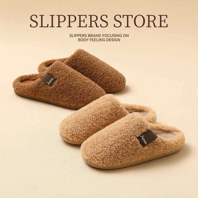 Household cotton slippers winter indoor home plush warm non-slip winter bedroom fluffy slippers winter