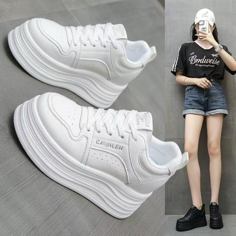 Thick-soled lightweight sports and leisure shoes autumn new versatile small man increases height and looks thin white shoes women