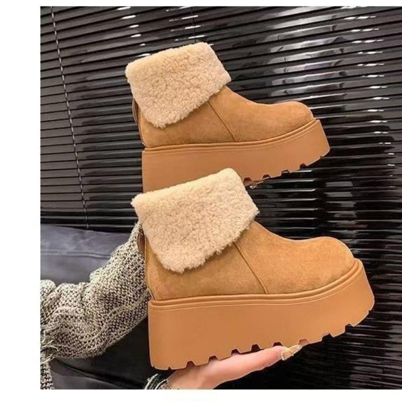 Thick-soled heightening fluffy snow boots for women's new winter piled and thickened warm muffin big-headed cotton shoes