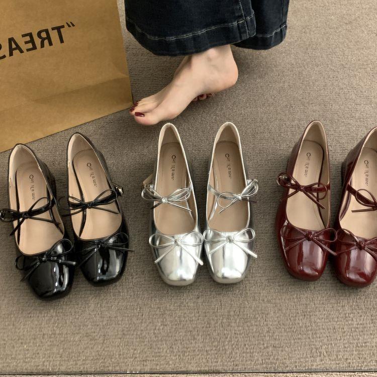 Bow French explosion Mary Jane single shoes women's square head fairy temperament silver small leather shoes 2025 spring new models