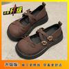 Brown bow platform Mary Jane shoes women's spring 2025 new retro college style jk versatile small leather shoes