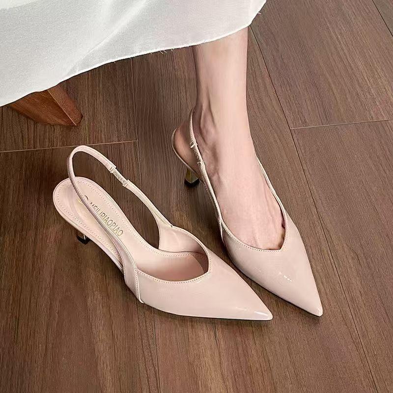 Casual simple pointed half-drag cat heel high heels 2025 summer new French fashion sexy outer stiletto shoes