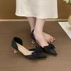 Bow high heels women's summer thin heels versatile black pointed single shoes thin small heels women's bag head hollow single shoes