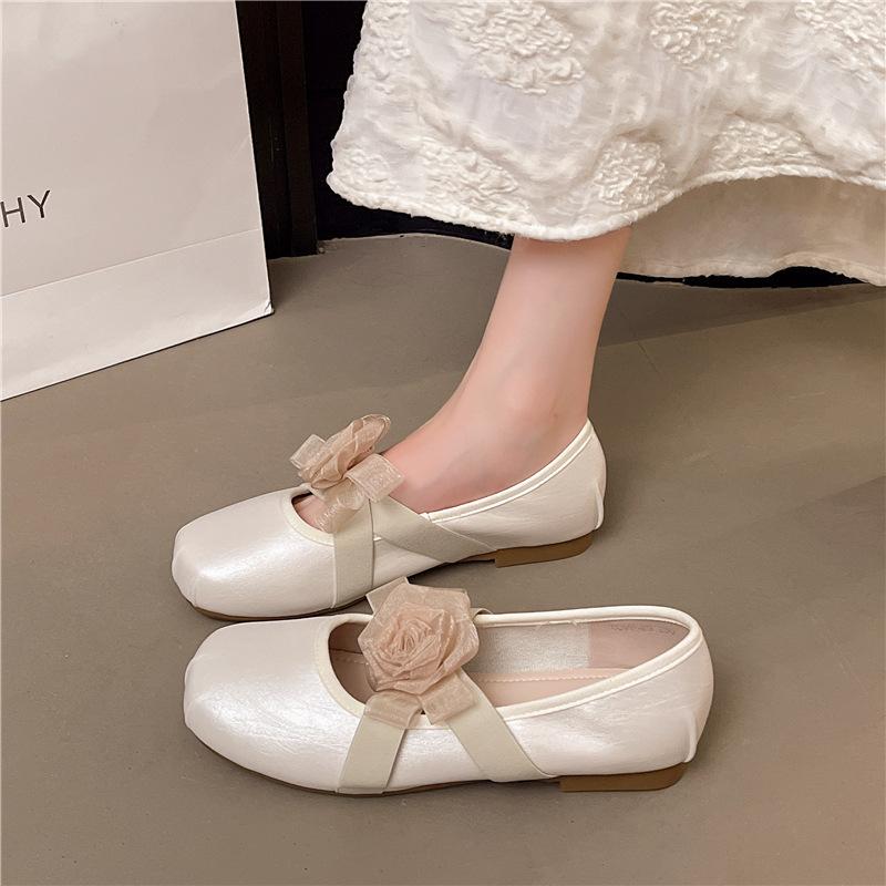 Beautiful camellia flower Mary Jane single shoes women's 2025 summer new retro cross-band versatile ballet shoes