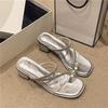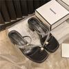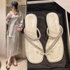 Fashion pearl one-word with set toe casual women's shoes 2025 summer new thick heel outer wear cool slippers 2025 direct sales