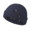 Fall And Winter Trendy Solid Color Safety Pin Iron Ring Knitted Wool Hat, Vintage Holey Pullover Wool Hat