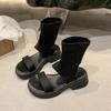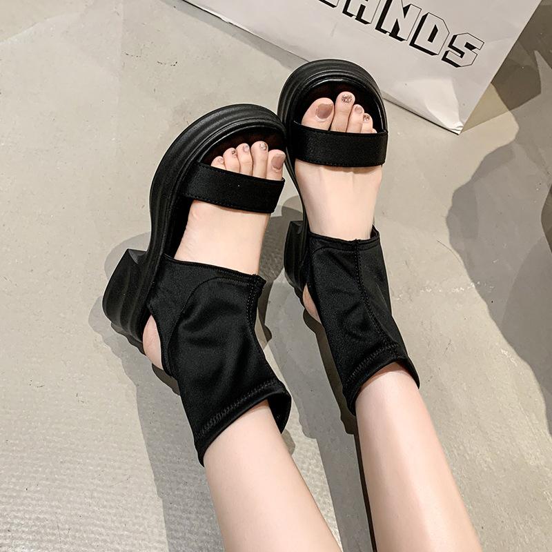 Black high-end cover toe platform sandals women's 2025 new summer wear height increase with skirt short tube cool boots