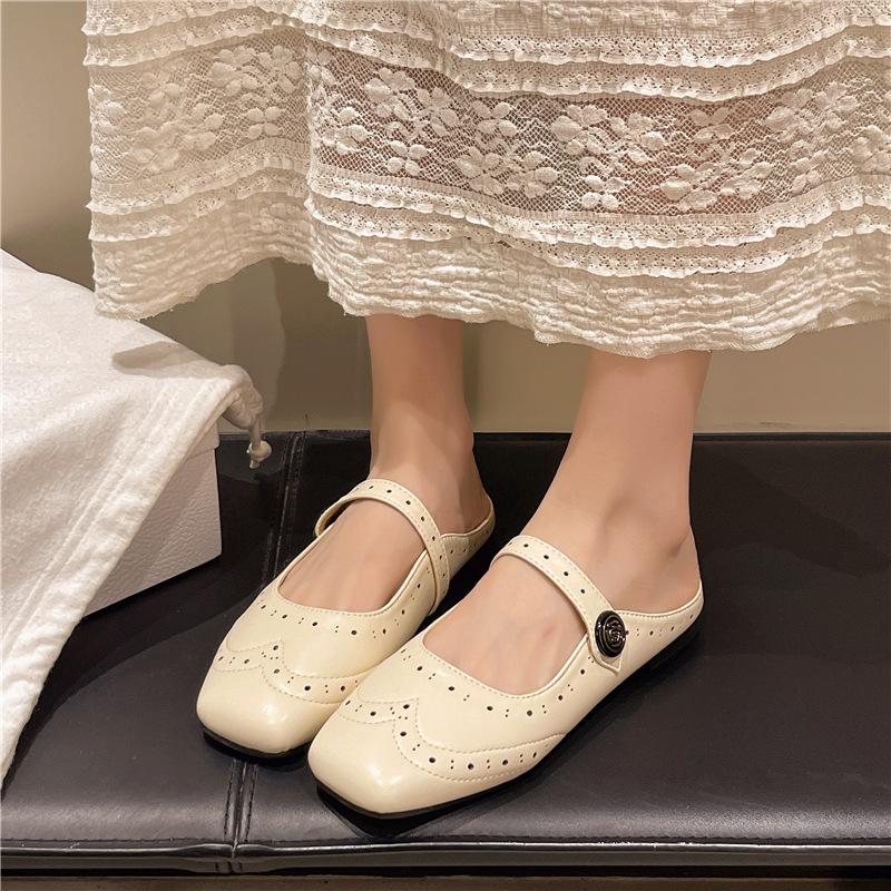 French fairy wind bag head half slippers 2025 new imitation leather outer wear versatile low heel sandals gentle muller shoes women