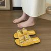 Cool slippers women's new belt buckle wear yellow 2025 outer wear flat-bottomed fashion summer outer beach one-word slippers
