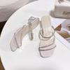 Fairy wind cool slippers female summer wear new Internet celebrity super fire rhinestone middle heel one word drag temperament high heels