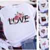 LOVE Valentine's Day White 3/4 Short Sleeve T Shirt Woman F440