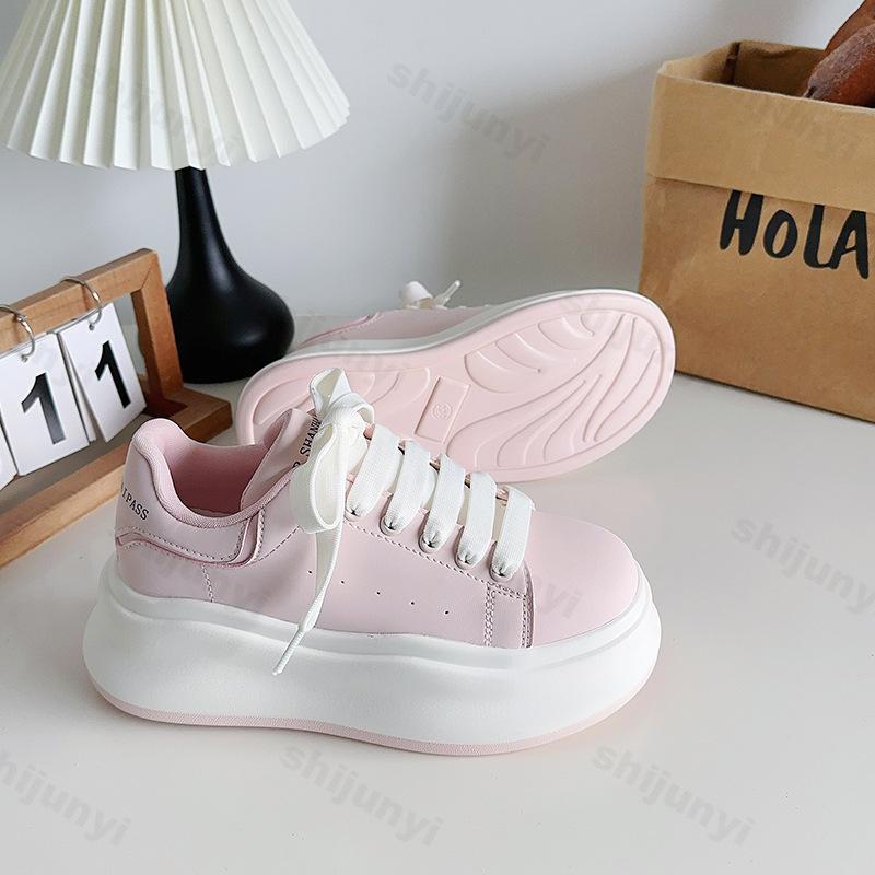 Women's Platform White Shoes 2025 Spring Autumn Height Increase Student Board Shoes Comfortable Fashion Cross Tied Casual Shoes