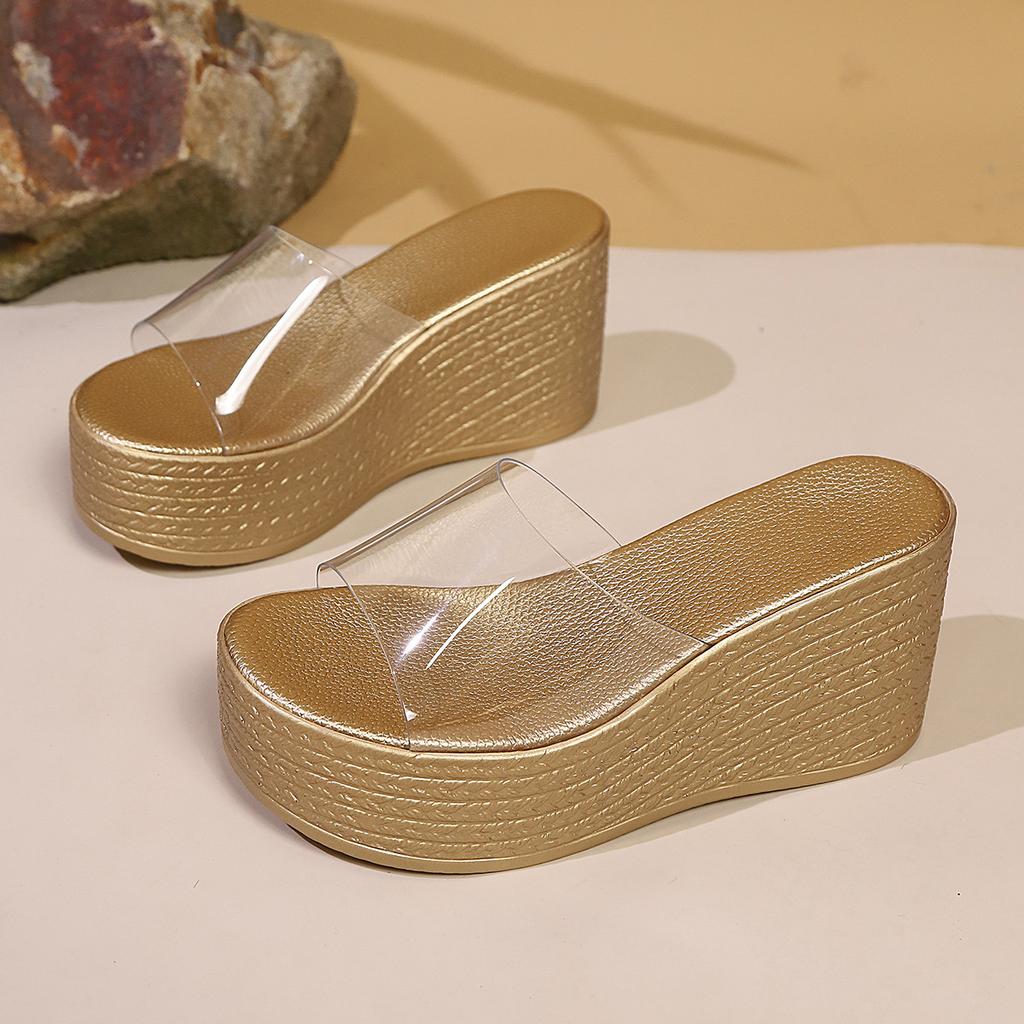 High-heeled slippers 2025 new thick-soled wedge heel transparent belt sandals women's shoes fashion high-heeled slippers foreign trade