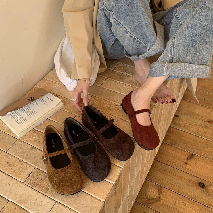 Retro late evening wind suede Mary Jane shoes children autumn and winter new red ballet light mouth soft flat single shoes women