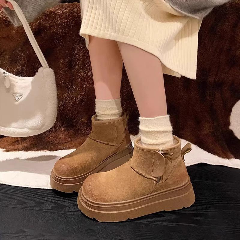 thick-soled snow boots women's non-slip velvet thickened short boots 2025 fur integrated Martin boots cotton shoes with higher thick soles