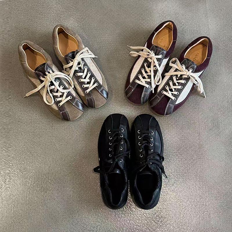 Sheepskin version~ 2025 new retro casual color matching sports flat-bottomed Forrest Gump shoes round head lace-up German training shoes women's