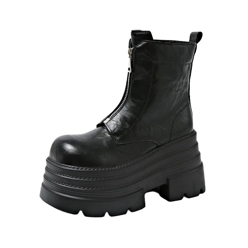Ankle Boots for Women Winter 10CM Motorcycle Boots Thick Heels Platform Leather Sneakers Woman Zip Chunky Short Combat Boots
