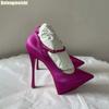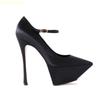 Women's Solid Color Leather Platform High Heels Pointed Toe Super High Thin Heel Sandals Ankle Strap Buckle Shallow Sexy Pumps