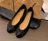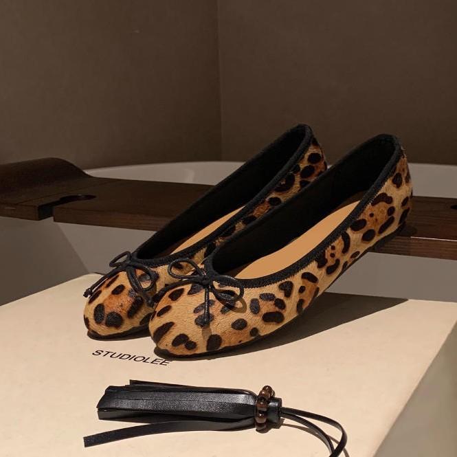 Sheepskin version~ leather French bow leopard print single shoes women's autumn new flat ballet shoes shallow mouth Mary Jane shoes