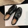 Grape mother the same style, Hatton College~ Shrinkage horse leather double buckle round head thick heel versatile British style leather shoes women