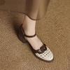 Women's Thick Heel Sandals Real Leather Hollow Cage Summer Eyelet Knot Roman Shoes round Toe Casual EVA Insole Rubber Outsole