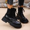 Fashion Warm Motorcycle Boots Women Lace-Up Plush Winter Ankle Boots Woman Black Beige Comfortable Flat Heel Cotton Boots