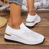 Fashion Women Rhinestone Casual Sneakers Breathable Wedge Women Lightweight Shoes Slip on New Comfortable Spring Mesh Shoes Size 36-43