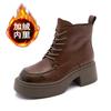 Leather Martin Boots Women's 2025 Autumn and Winter New Thick-soled Versatile Short Boots Fleece Warm Black Retro Boots Medium Tube