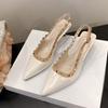2025 summer new one-word buckle with pointed head rivets high heel bag head thin heel willow shoes wear sandals women