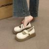 Buckle strap platform Mary Jane shoes women's medium heel Korean version one-word new 2025 spring and autumn British style small leather shoes women