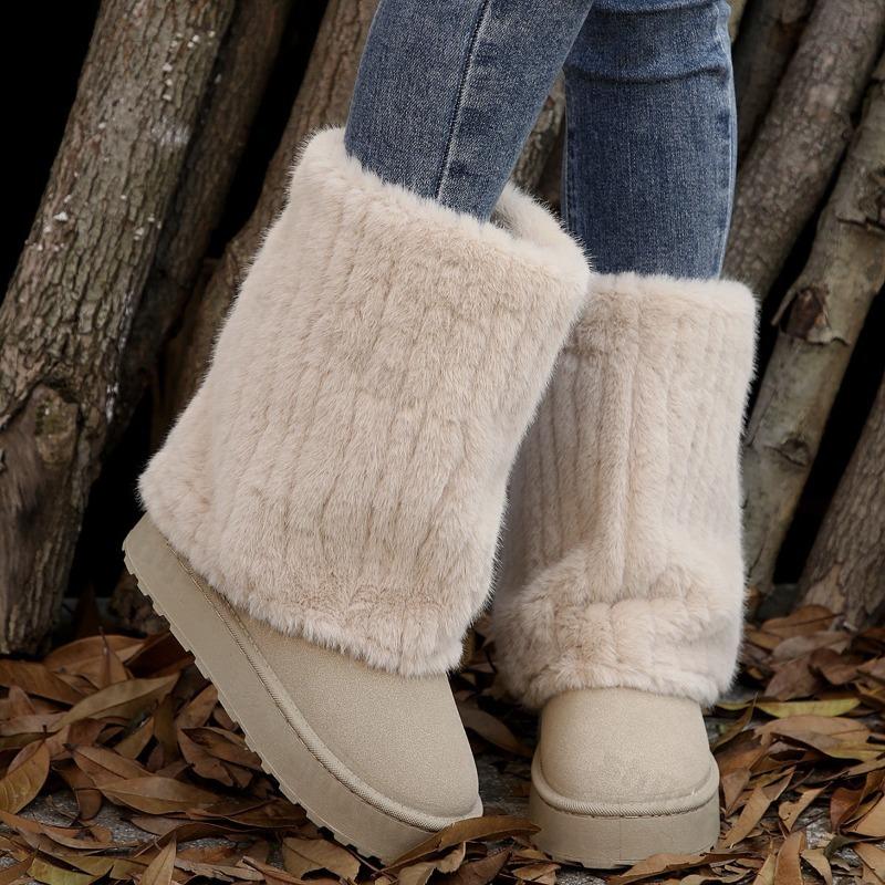 Fashion Winter Women Snow Boots 2025 Plush Warm Anti Slip Comfortable Ankle Boots Fluffy Round Toe Platform Windproof Cotton Boots