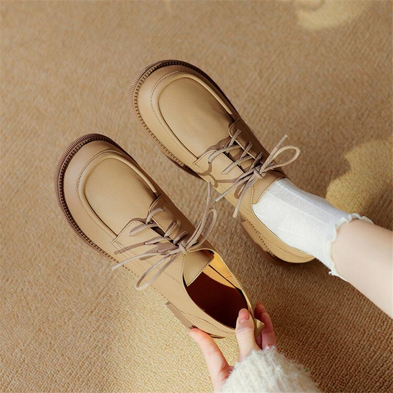 Fashion 2024 New Spring Genuine Leather Women Shoes Round Toe Women Pumps Shoes for Women Low Heel Loafers Ladies Shoes Zapatos De Mujer